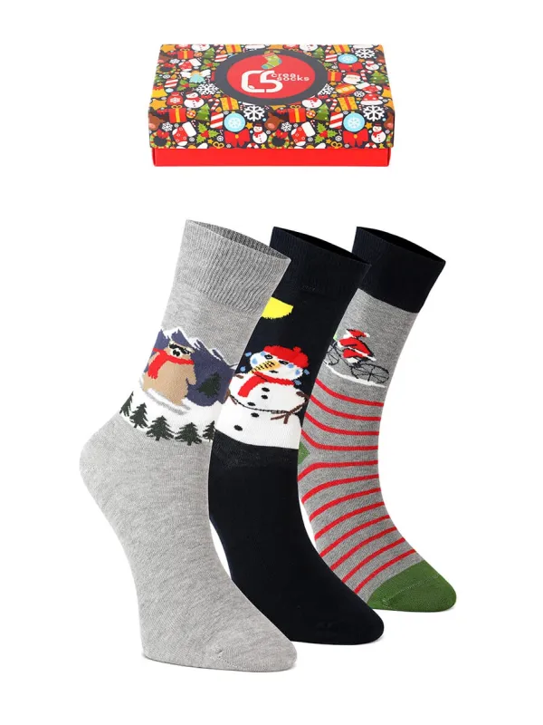Pristatome Jums kalėdines kojines, kurios bus puiki dovana ne tik sau, bet ir mylimajai ar mylimajam, sesei, draugei, mamai. Kojinių komplektą sudaro 3 vienetai porų kojinių. Kojinės yra universalios, todėl puikiai tiks tiek moterims, tiek vyrams.