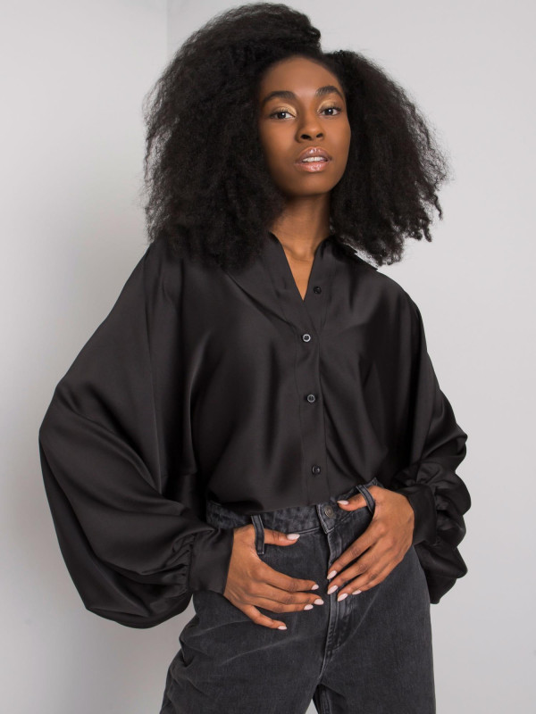 Marškiniai moterims pūstomis rankovėmis (juodi)