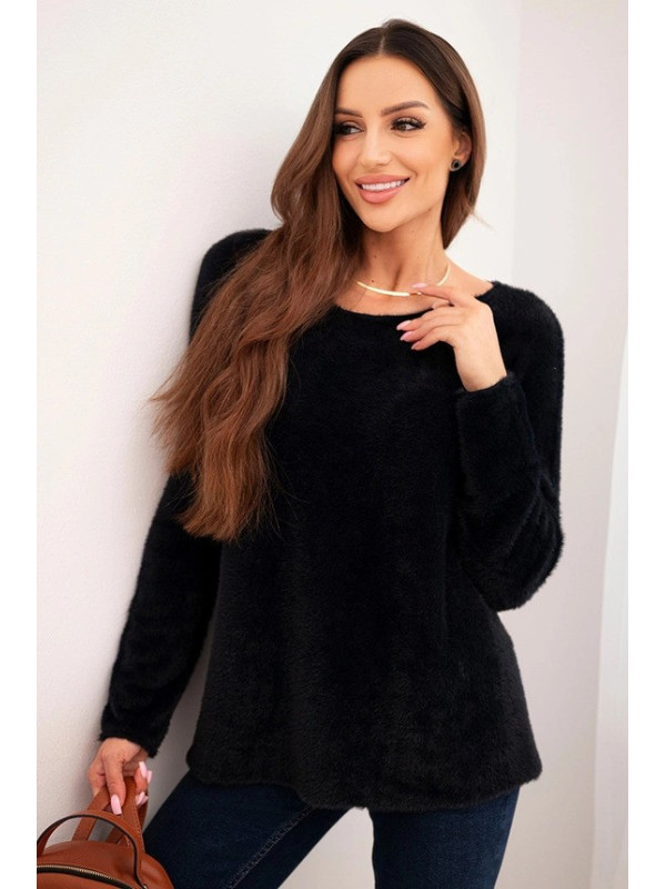 Megztinis moterims su alpakos vilna apvalia iškirpte (Juoda)
