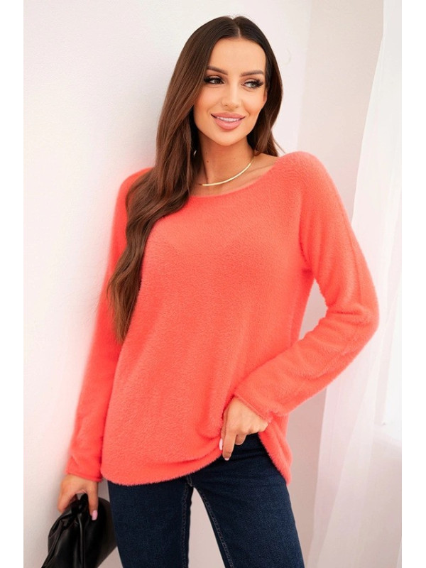 Megztinis moterims su alpakos vilna apvalia iškirpte (Koralo)