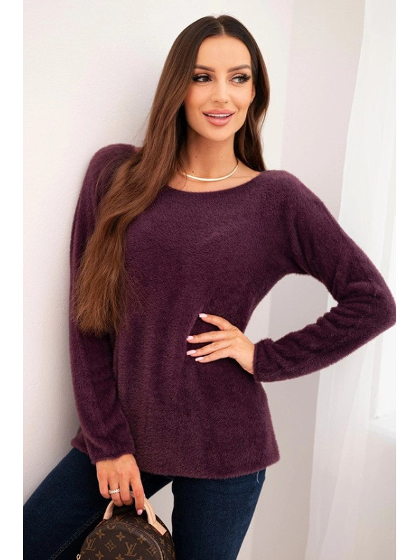 Megztinis moterims su alpakos vilna apvalia iškirpte (violetinė)