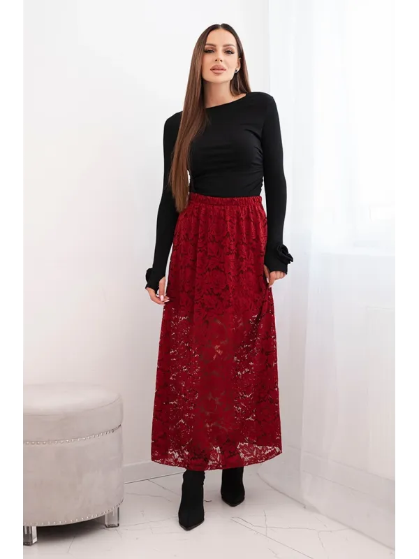 Moteriškas sijonas su nėriniais (bordo)