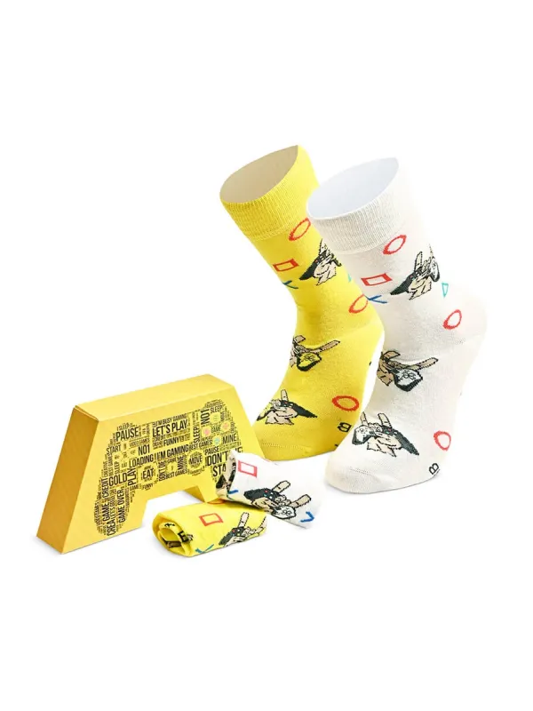 Pristatome Jums šmaikščias kojines, kurios bus puiki dovana ne tik sau, bet ir mylimajai ar mylimajam, sesei, draugei, mamai. Kojinių komplektą sudaro 2 vienetai porų kojinių. Kojinės dekoruotos kompiuterinių žaidimų elementais, todėl puikiai tiks žmonėms, kurie mėgsta kompiuterinius žaidimus. Kojinės yra universalios, todėl puikiai tiks tiek moterims, tiek vyrams.